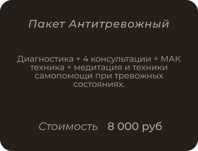Девушка 24 года — тревога за будущее, неуверенность, ревность на фоне тревоги, также в анамнезе - токсичные отношения. Было проведено 12 сессий, в ходе которых клиент стала меньше тревожиться из-за возможных ситуаций, ушли навязчивые мысли, клиент обучилась навыкам самопомощи, научилась справляться с ревностью.